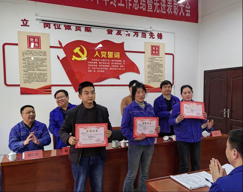 公司副總經(jīng)理趙永強宣讀了《關(guān)于兌現(xiàn)2024年度安全承包獎的決定》、《關(guān)于表彰2024年度先進班組和先進個人的決定》,對2024年年度工作中作出突出貢獻的炭材運行三班先進班組、柴彬等8名先進個人予以表彰,并頒發(fā)了先進集體獎等四項集體獎牌以示鼓勵。